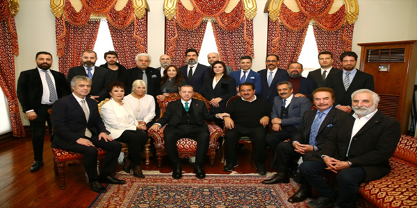 Cumhurbaşkanı Erdoğan aralarında Orhan Gencebay, Ajda Pekkan, İbrahim Tatlıses, Yavuz Bingöl, Hülya Koçyiğit, Cengiz Kurtoğlu, Hasan Kaçan, Cemal Hünal, Kadir Koçdemir, Sibel Can, Serdar Gökhan, Burak Hakkı, Demet Tuncer, yapımcı ve senarist Mehmet Bozdağ ile Osman Soykut'ur bulunduğu ünlü isimleri Beylerbeyi Sarayı'nda kabul etti.