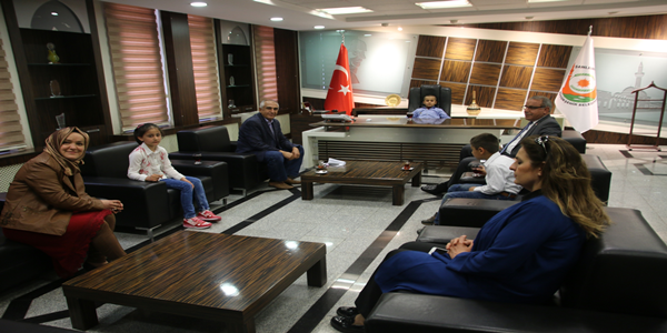 Eyyübiye ilçesi Ertuğrul Gazi İlkokul öğrencisi olan Mahmut Kaya, arkadaşları ve öğretmenleriyle birlikte 23 Nisan Ulusal Egemenlik ve Çocuk Bayramı dolayısıyla Şanlıurfa Büyükşehir Belediye Başkan Vekili İsa Kızıldemir'i makamında ziyaret etti.
