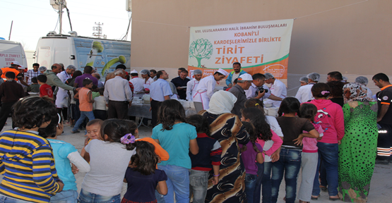 Bu yıl 8.si düzenlenen Halil İbrahim Buluşmaları kapsamında Şanlıurfa'nın Suruç ilçesinde YİBO çadırkentte bulunan 5 bin Suriyeli mülteciye sabah namazı sonrasında tirit ikramı yapıldı.