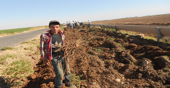Şanlıurfa'nın Eyyübiye ilçesine bağlı Ulucanlar mahallesinde Ramazan ayı ve sıcak havaya rağmen yevmiye 20 lira için meyan kökü toplayan işçilerin zorlu hayat mücadelesi.