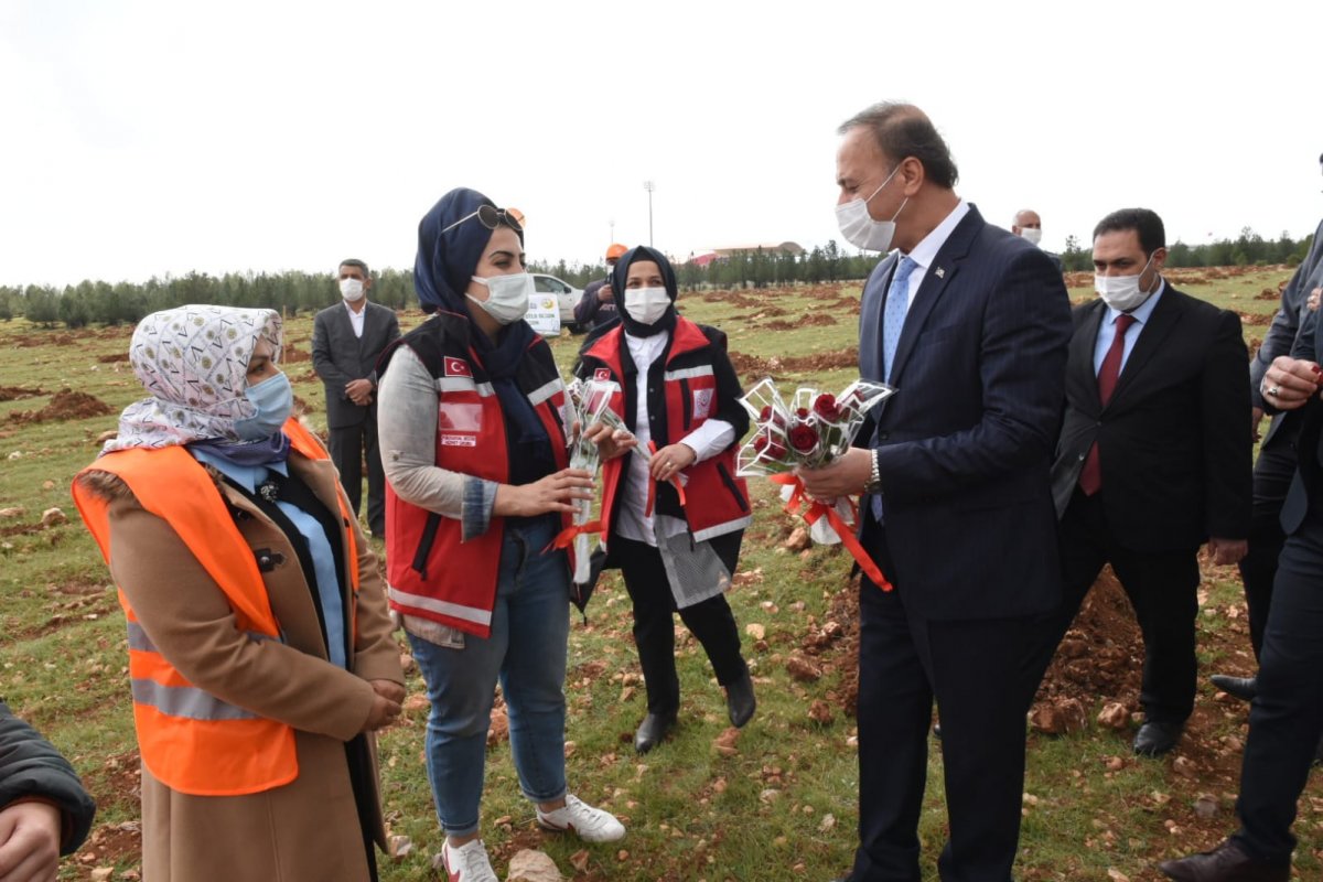 Toplam 10 bin fidanın toprakla buluşturulacağı sahada incelemelerde bulunan Vali Erin, Aile, Çalışma ve Sosyal Hizmetler Bakanlığı Kadının Statüsü Genel Müdürlüğü tarafından 81 ilde düzenlenen Mercan Ormanı etkinliğinin Şanlıurfa’da da düzenlendiğini belirterek, 6-7-8 Mart tarihleri arasında gerçekleştirilen faaliyet ile 10 bin fidanın toprakla buluşmuş olacağını söyledi.
