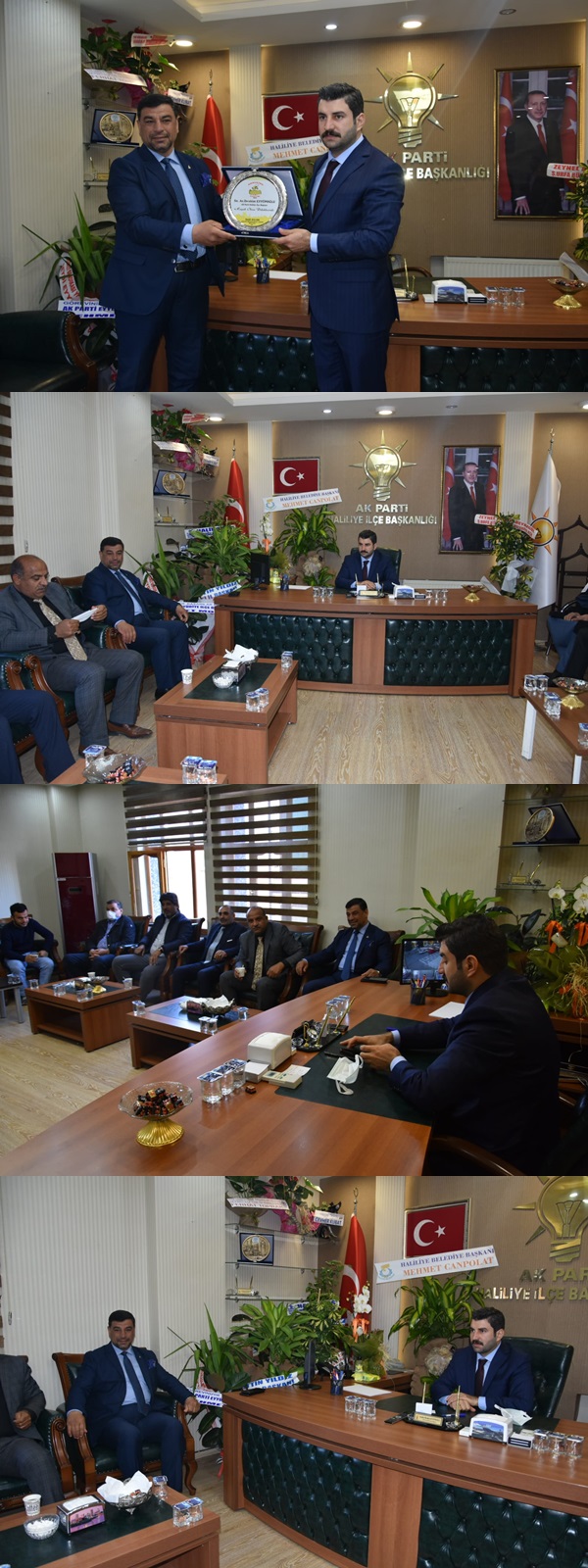 Ziyaretin ardından Anavatan Şanlıurfa il başkanı ve MKYK üyesi Halil Aslan Haliliye Ak Parti ilçe Başkanlığına atanan İbrahim Eyyüpoğlu’na plaket takdim etti.