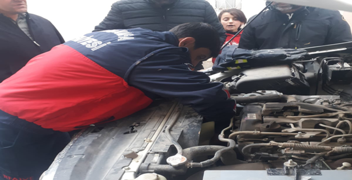 Aracın motorunda sıkışan kediyi itfaiye kurtardı