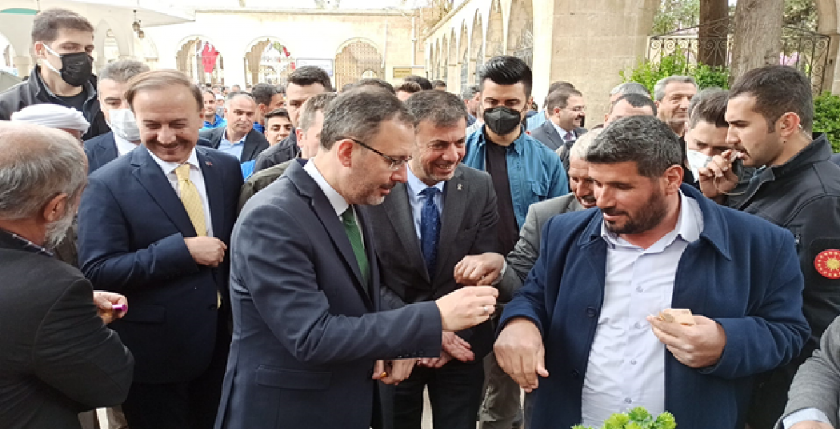 Çeşitli temaslarda bulunmak üzeri Şanlıurfa'ya gelen Gençlik ve Spor Bakanı Mehmet Kasapoğlu, Vali Abdullah Erin, Büyükşehir Belediye Başkanı Zeynel Abidin Beyazgül, AK Parti il Başkanı Abdurrahman ile birlikte tarihi Balıklıgöl yerleşkesindeki Dergah Camisi'ne geçerek, burada kentin düşman işgalinden kurtuluşu ve Polis Haftası nedeniyle Cuma Namazı öncesi okutulan mevlit programına katıldı.