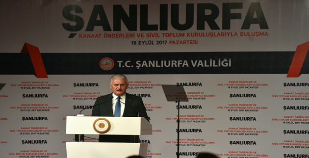 2017-2018 Eğitim Öğretim yılının açılışını yapmak üzere Şanlıurfa’ya gelen Başbakan Binali Yıldırım , Şanlıurfa'da kanaat önderleri ve sivil toplum kuruluşları ile bir araya geldi. Başbakan Yıldırım, Yapay devlet kurmaya çalışanlar iyi bilsinler, ulusal güvenliğimizi tehdit edecek her türlü girişim gerekli karşılığı anında görecektir." dedi