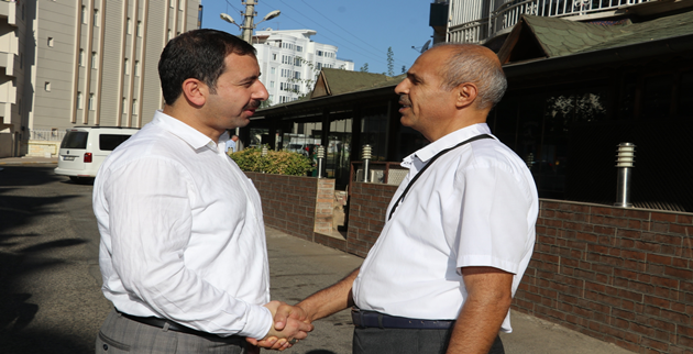 Başkan Baydilli alan gezilerinde esnaf ve vatandaşlarla da sohbet ederken, taleplerini dinleyip not alıyor.