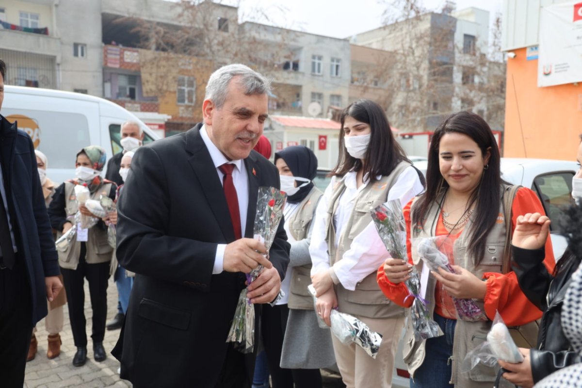 Sanlıurfa Büyükşehir Belediye Başkanı Zeynel Abidin Beyazgül, 8 Mart Dünya Kadınlar Günü nedeniyle Organize Sanayi Bölgesindeki fabrikalarda çalışan kadın işçilerle bir araya gelerek kadınlar gününü kutladı.