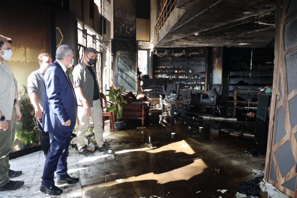 Başkan Beyazgül, Yanan mağazada incelemelerde bulundu