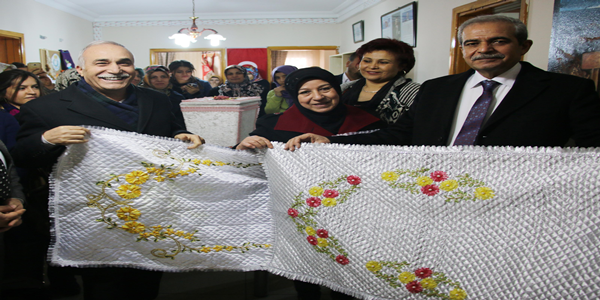 Açıklamaların ardından Başkan Demirkol ve Milletvekili Fakıbaba’ya, kadınlar yaptıkları el işlerinden hediye etti.