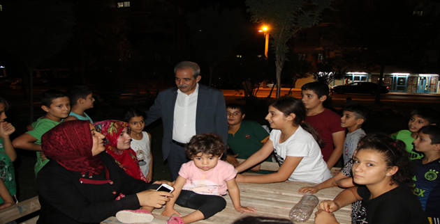 Haliliye Belediye Başkanı Fevzi Demirkol, Veysel Karani Mahallesindeki parklarda gece saatlerinde vakit geçiren vatandaşlarla bir araya gelerek, sohbet etti.