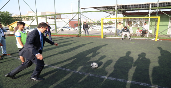 Şanlıurfa Ticaretliler Derneği tarafından düzenlenen halı saha turnuvasında lise öğrencileri ile buluşarak stres attılar ve müsabaka öncesi Türk Bayrağı öperek duygusal anlar yaşadılar.