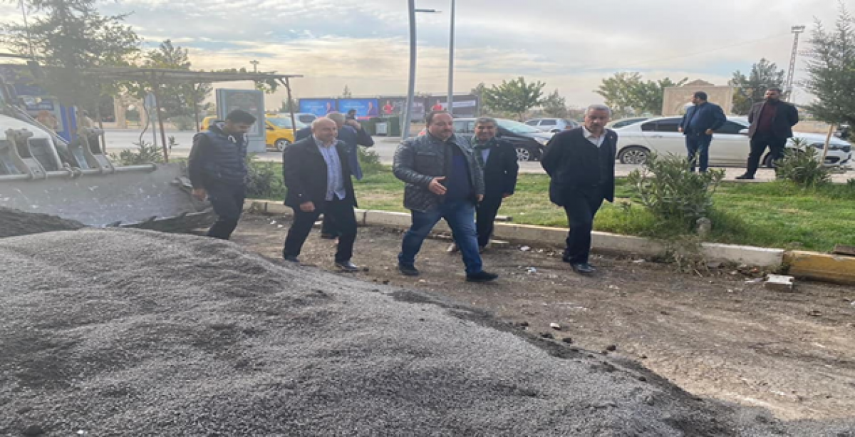 Başkan Salih Ekinci, Belediye meclis üyeleri ile birlikte Viranşehir Belediyesi Fen İşleri Müdürlüğünce Yenişehir Mahallesi 15. Caddede asfalt serim ve 1805.Sokakta başlatılan kilitli parke döşeme çalışmalarını denetledi.