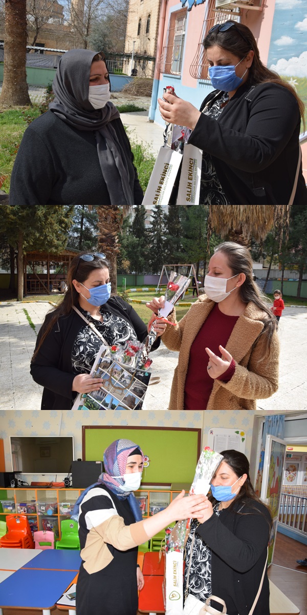 8 Mart Dünya Kadınlar günü dolayısıyla Viranşehir Zübeyde Hanım anaokulunu ziyaret eden Belediye Başkanı Salih Ekinci’nin eşi Sibel Ekinci, Kadınlarla bir araya gelerek karanfil takdim edip, günlerini kutladı.