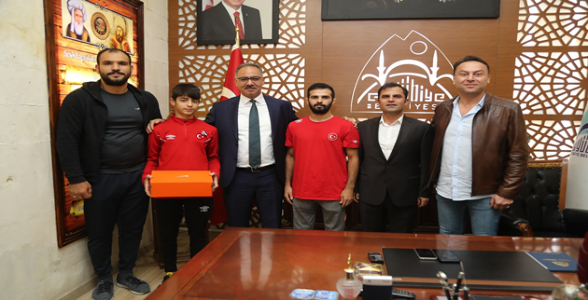 Eyyübiye Belediye Başkanı Mehmet Kuş, AK Ev Spor Salonlarında eğitim ve gören şampiyonalarda dereceye giren sporcularla bir araya gelip, hediyeler verdi. gençliğie yaptığı yatırımların meyvesini şampiyonalarda alınan madalyalarla alan Eyyübiye Belediyesi, gençliğe yatırım yapmaya devam ediyor. Onlarca spor salonunda binlerce genci bünyesinde barındıran Eyyübiye Belediyesi sporcularından İslam Turan ve Barış, Ulusal ve Uluslararası şampiyonalardan madalya ile döndü. Yunanistan’da düzenlenen Balkan Şampiyonası U 15 kategorisinde Balkan 3. ‘cüsü olan İslam Turan ve Elazığ’da düzenlenen Kuraş şampiyonasında Türkiye 1.’cisi olan Barış Mat, Eyyübiye Belediye Başkanı Mehmet Kuş ile bir araya geldi. Sporculara çeşitli hediyeler veren Başkan Kuş, “ Eyyübiye Belediyesi Gençlik Merkezleri ve Ak Ev spor Salonlarında binlerce gencimize hizmet etmenin mutluluğunu yaşıyoruz.” Dedi.