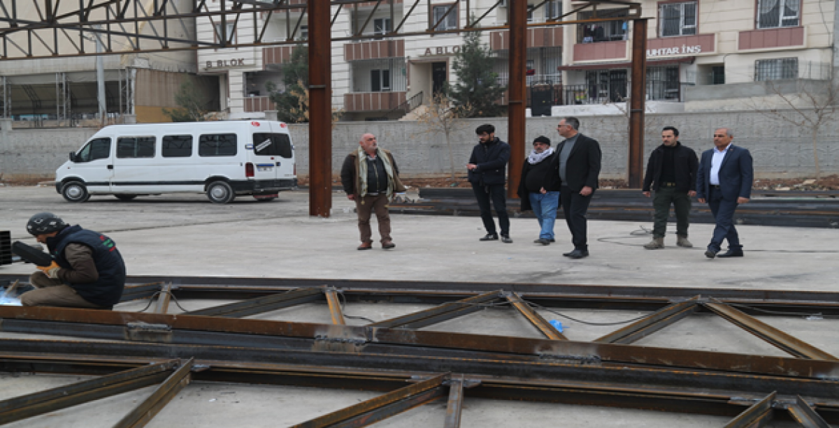 Eyyübiye Belediye Başkanı Mehmet Kuş, Direkli mahallesinde yapım çalışmalarında sona gelinen Modern Kapalı Semt Pazarını inceleyip, ilgililerden çalışmalar hakkında bilgi aldı.