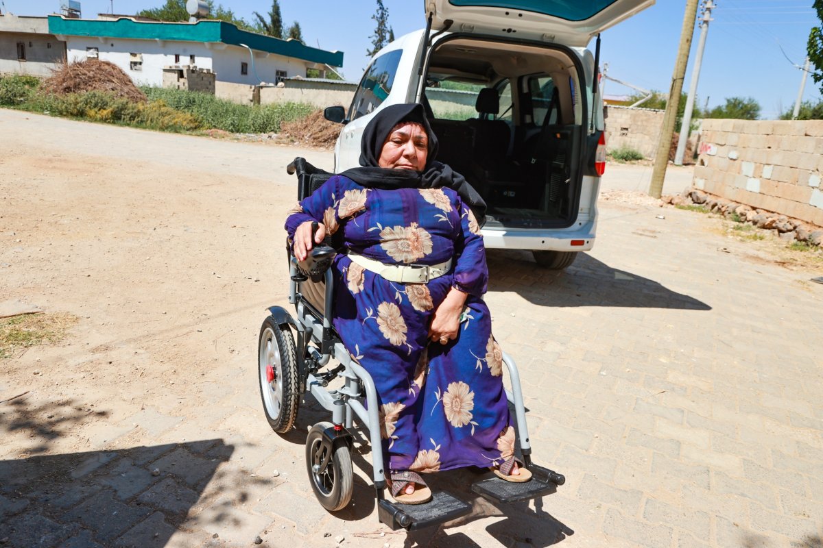 Harran Tantana kırsal mahallesinde yaşayan bedensel engelli Aysel Bata'nın akülü tekerlekli sandalyesi, Harran Belediyesi tarafından ikamet ettiği adreste teslim edildi