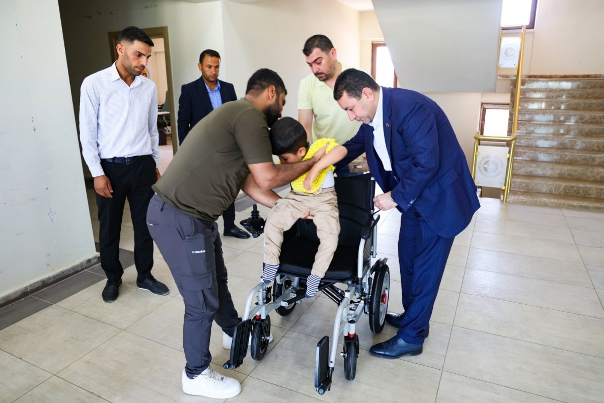 Harran kırsal Öztürk mahallesinde yaşayan küçük Umut Çoban'ın akülü tekerlekli sandalyesini Harran Belediye Başkanı Mahmut Özyavuz, teslim etti.