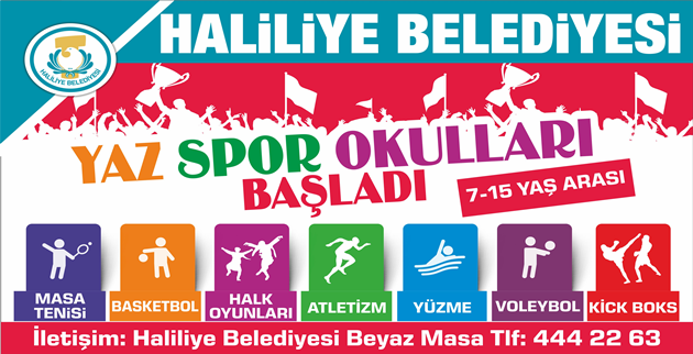 Haliliye Belediyesi Spor İşleri Müdürlüğü, okulların tatil olmasıyla birlikte çocukların yaz aylarında vakit geçirmeleri için yaz spor okullarını açıyor. Yaz spor okullarında; atletizm, basketbol, voleybol, yüzme, masa tenisi, kick boks ve halk oyunları branşlarında eğitimler verilecek. Tüm branşlarda 7-15 yaş aralığındaki çocukların yer alırken, yüzme branşında ise zorunlu sağlık raporu ve bone gerekmektedir.