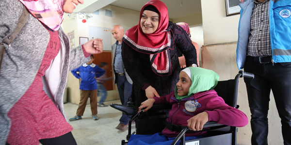 Eyyübiye Belediyesi Sosyal Yardım İşleri Müdürlüğü, Eyyübiye Belediye Başkanı Mehmet Ekinci’nin talimatlarıyla ilçe genelinde yardıma muhtaç vatandaşlara ulaşmaya devam ediyor. Hem Sosyal Yardım İşleri Müdürlüğü hem de Umut Masası aracılığıyla yardım çalışmalarını sürdüren ekipler vatandaşın yüzünü güldürüyor. Eyyübiye Belediye Başkanı Mehmet Ekinci’nin eşi Ayşe Ekinci’nin de sık sık eşlik ettiği yardım çalışmalarının son durağı Ertuğrul Gazi İlk Öğretim Okulu oldu. Okulun 4. sınıfında okuyan engelli Hatice Biliz’in zor şartlar altında annesi tarafından sırtında taşınarak okula getirilip götürülmesinin sosyal medya aracılığıyla Başkan Ekinci’ye bildirilmesiyle ekipler anında harekete geçti. Eyyübiye Belediyesi Sosyal Yardım İşleri Müdürlüğü ekipleriyle okula giden Ayşe Ekinci, öğrenciler tarafından sevgi gösterileriyle karşılandı. Engelli öğrenci Hatice Biliz’le bir araya gelen bir süre sohbet eden Ayşe Ekinci,” Kız çocuğumuzun annesi tarafından zor şartlarda okula götürülüp getirildiğinin Başkanımıza iletilmesinin ardından sağ olsunlar özverili ekibimiz hemen harekete geçti ve kızımıza akülü tekerlekli sandalye getirdiler.” Dedi.