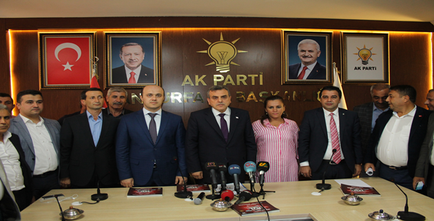 AK Parti Şanlıurfa İl Başkanlığında düzenlediği basın toplantısında Beyazgül, Halfeti’de Av. Canan Onur Sayar’ı, Hilvan’da Mustafa Cıldır’ı, Birecik’te, Mehmet Özbakan’ı yeni ilçe başkanı olarak basın mensuplarına tanıttı.