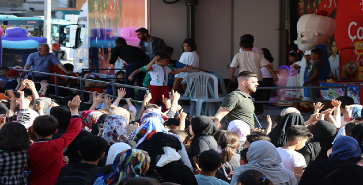 Türkiye Cumhuriyeti Cumhurbaşkanlığı İletişim Başkanlığı tarafından başlatılan ‘’Çocuklarımız İçin Hep Birlikte Bir Tır Dolusu Mutluluk Şehrine Geliyor’’ projesi kapsamında düzenlenen etkinlikte çocuklar gönüllerince eğlendiler.