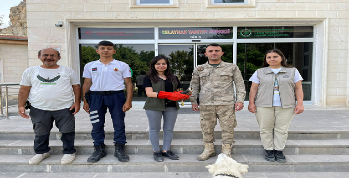 Şanlıurfa’nın Birecik ilçesinde Jandarma Komutanlığı Asayiş Bot Timi yaralı halde bulduğu Gökdoğan yavrusunu Birecik Doğa Koruma ve Milli Parklar Şefliği personellerine teslim etti.