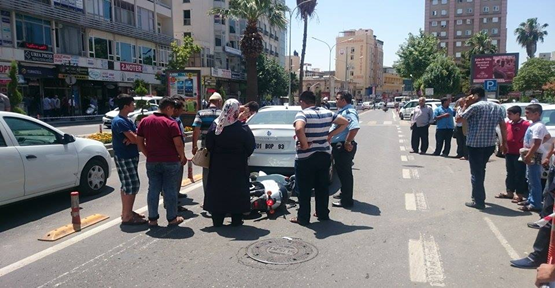 Şanlıurfa'nın Haliliye ilçesi Büyükşehir Belediyesi önünde Otomobil elektrikli motosikleti çarptı. kazada motosikleti süren küçük çocuk yaralandı.