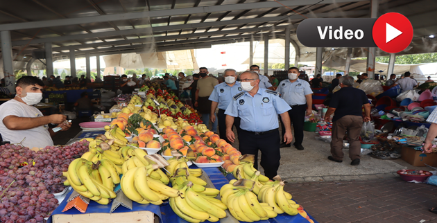 Pazar esnafını denetleyen zabıta ekipleri, maske, hijyen, sosyal mesafe kurallarını ve meyve-sebze gibi eşyaların seçilmemesini hatırlatırken kurallara uymayan pazarcılara ise 1 ile 6 gün arasında tezgah açtırmama cezasının uygulanacağı bildirildi.