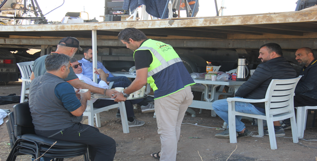 Büyükşehir Belediyesi ekipleri, Akçakale ilçesinde sınırın sıfır noktasında farklı birimlerde görev yapan tüm vatandaşlara yemek ikramında bulundu. ikramlardan dolayı görevliler Büyükşehir Belediyesine teşekkür etti.