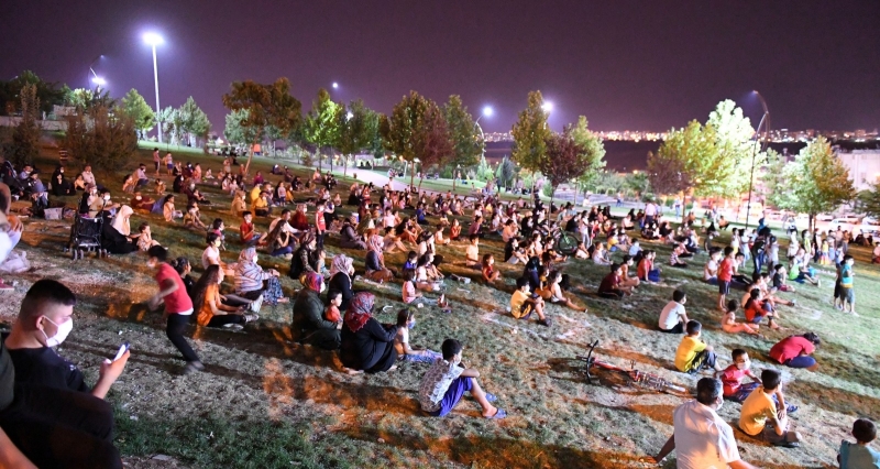 Maske zorunluluğunun uyulduğu açık hava "Arkadaşım Olur Musun?"adlı tiyatro oyununa gelen çocukların ateşleri ölçülürken maske ve sosyal mesafe kurallarına uygun oturum düzeni sağlandı.
