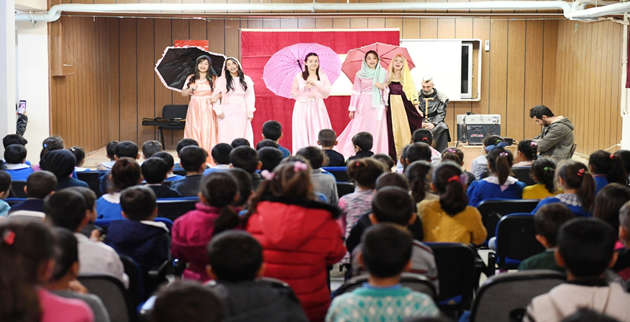 GAP İlkokulunda Büyükşehir Belediyesi Konservatuar Şube Müdürlüğüne bağlı Şehir Tiyatro Ekibince geleneksel Türk tiyatrosundaki Gölge Oyunu olarak da bilinen 'Karagöz ve Hacivat'ı oyunu sergilendi.
