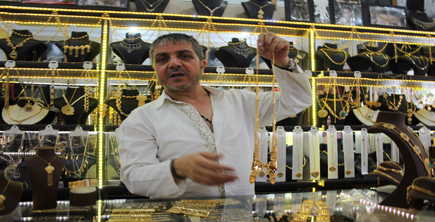 Şanlıurfa'da, evlenmek isteyen çiftler, ailelerine küçük düşmemek fiyatları 15 ile 200 TL arasında değişen kemer, akıtma, metrelik zincir, kolye, küpe ve bilezikten oluşan imitasyon ürünlere yoğun ilgi gösteriyor.