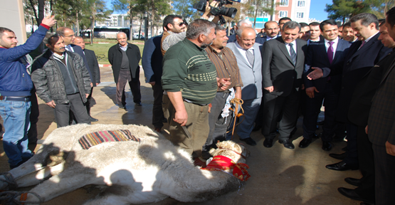 Bir dizi temaslarda bulunmak üzere Şanlıurfa'ya gelen Gıda Tarım - Hayvancılık Bakanı ve Şanlıurfa Milletvekili Faruk Çelik seçim zaferin ardından onuruna verilen deveyi Gönüllü Kuruluşlar Aşevi'ne bağışladı.