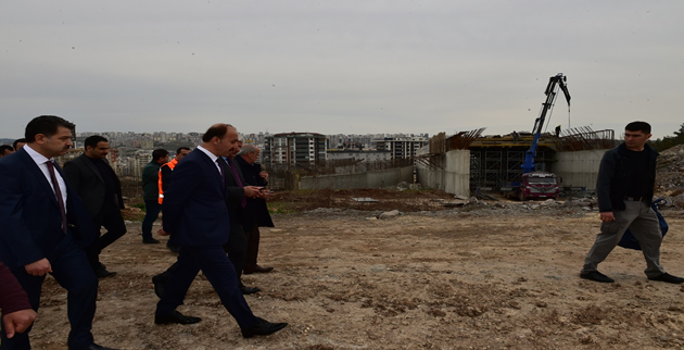 Karayolları 9. Bölge Müdürü Ökkeş Ceylan ve Şanlıurfa Büyükşehir Belediyesi Genel Sekreteri Abdülkadir Acar ile birlikte kavşak yapım çalışmalarının devam ettiği inşaat alanına giden Vali Erin, burada yüklenici firma sorumlularından bilgi aldı.