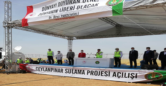 Tarım ve Orman Bakanı Bekir Pakdemirli, Türkiye'nin en büyük tarım işletmesi olan Şanlıurfa Ceylanpınar Tarım İşletmesi'nde yapımı tamamlanan ve 60 bin dekar alanı suyla buluşturacak yatırımın açılışını ayptı.