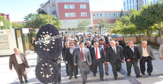 İl Başkanı Aziz Aydınlık ve Milletvekili İdris Yıldız başkanlığında toplanan grup, getirdikleri siyah çelengi Adliyeye bıraktıktan sonra basın açıklaması yaptı. 17-25 Aralık operasyonunun üzerinin kapatılmasını sert dille eleştiren Milletvekili Yıldız, dava kapatılsa da tartışılmaya devam edeceğini belirtti.