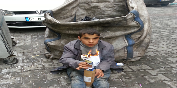 10 yaşında çöp toplayan Abdurrahman, “Hava çok soğuk. Dışarıda çalışmak neredeyse mümkün değil. çöplerden hurda karton topluyorum, Soğuktan korunmak içinde ateş yakıyorum. Ateş yakarak ısınıyorum. Ne yapayım aileme yardım etmek zorundayım” dedi.