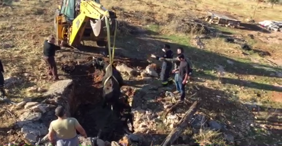 Çukurda mahsur kalan inek kurtarıldı