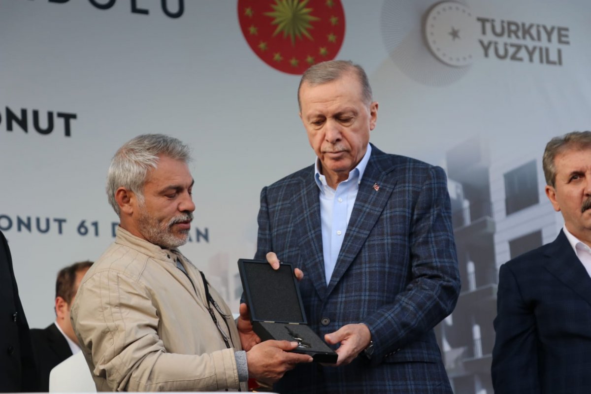 Cumhurbaşkanı Erdoğan, TOKİ tarafından yapımı tamamlanan 659 konut ile 61 dükkanın da anahtarlarını hak sahiplerine teslim etti.