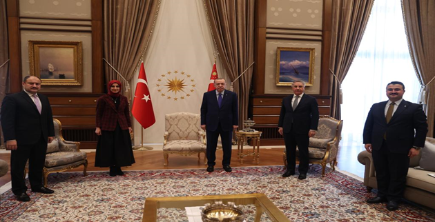 Aday Çakmak, Vekil Gürpınar ve Başkan Yıldız’ı külliyede ağırlayan Cumhurbaşkanı Erdoğan, yarın yapılacak olan Siverek Belediye Başkanı seçimi ile ilgili istişarede bulundu.