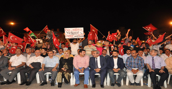 Etkinlikte, şehitler için Kur'an-ı Kerim okundu, dualar edildi. Çocuklar ve kadınların da katıldığı demokrasi nöbetinde, FETÖ aleyhine sloganlar atıldı.
