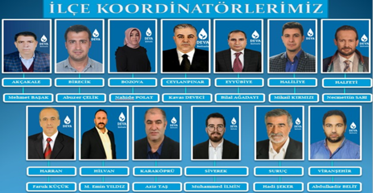 Demokrasi ve Atılım (DEVA) Partisi Şanlıurfa İl Başkanlığı Şanlıurfa’nın tüm ilçeleri için “İlçe Koordinatör” atamasını gerçekleştirdi.
