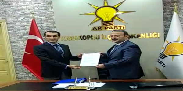 Ak Parti Karaköprü İlçe Başkanlığı’na gelen Dolaş , başvuru dosyasını Karaköprü İlçe Başkanı Ahmet Aksoy'a  teslim etti.