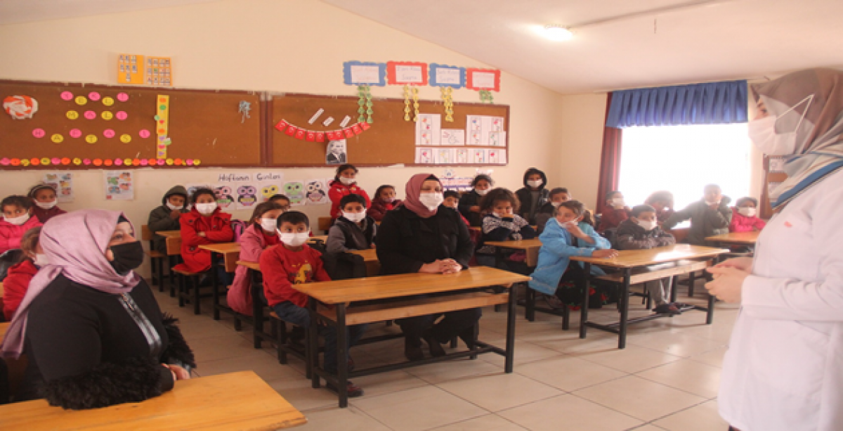 Eyyübiye Belediyesi Sosyal Yardım İşleri Müdürlüğüne bağlı ekipler, Eyyübiye Belediye Başkanı Mehmet Kuş’un talimatlarıyla merkez ve kırsal mahalle ayırımı yapmadan öğrencilere mont, ayakkabı, eldiven ve bere dağıtımına devam ediyor. Sosyal belediyecilik faaliyetleriyle örnek çalışmalara imza atmaya devam eden Eyyübiye Belediyesi, soğuk kış günlerinde dezavantajlı öğrencilere giysi yardımını sürdürüyor. Belediye Başkanı Mehmet Kuş’un talimatlarıyla çalışmalarına hız kesmeden devam eden Sosyal Yardım İşleri Müdürlüğüne bağlı ekipler son olarak Olgun mahallesinde Olgun ilk okulu ve ana sınıfındaki yüzlerce öğrenciye mont, ayakkabı, eldiven ve bere hediye etti. Düzenlenen dağıtım törenine katılan Eyyübiye Belediye Başkanı Mehmet Kuş’un eşi Zekiye Kuş, okul idarecileri ve öğretmenlerle birlikte öğrencilere hediyelerini tek tek takdim etti.