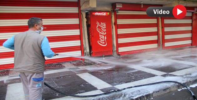 Eyyübiye Belediyesi Temizlik İşleri Müdürlüğüne bağlı ekipler, cadde ve sokaklarda köpüklü deterjanlar ve tazyikli su ile yıkama ve dezenfekte çalışmalarına ara vermeden devam ediyor.