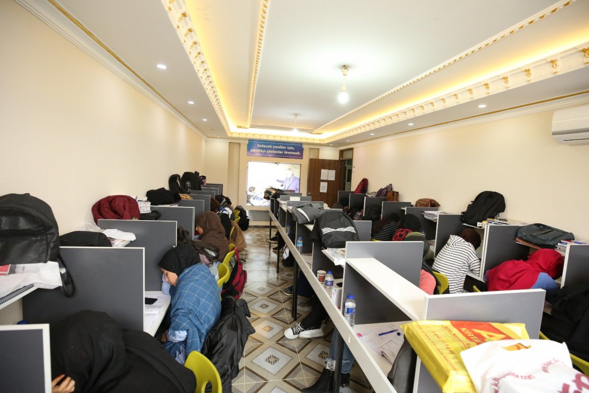 Tüm eğitimlerin ve deneme sınavları dâhil eğitim materyallerinin ücretsiz verildiği sınav hazırlık merkezleri ve kitap odaklarında gençlere ayrıca ücretsiz çay ve kekte ikram ediliyor.