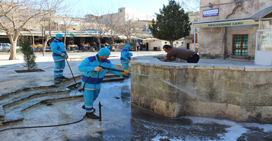 Eyyübiye Belediye Başkanı Mehmet Ekinci’nin eşi Ayşe Ekinci’ye gelen bir talebi değerlendiren Eyyübiye Belediyesi Temizlik İşleri Müdürlüğüne bağlı ekipler Haşimiye Meydanı doğusunda bulunan ve Şanlıurfa’nın tarihi camilerinden biri olan Mevlevihane Camisinin avlusu başta olmak üzere Cami avlusu içerisinde bulunan ve içi kirli su dolu olan havuzlar ile cami dışını deterjanla yıkayıp temizleyerek caminin  daha temiz bir görüntüye kavuşmasını sağladı.