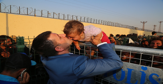 Asker ve polislerin güvenliği altında geçişleri sağlanan Suriyelilere kendi elleriyle su ve yiyecek ikram eden Başkan Ekinci, bazılarıyla da Arapça konuşarak sohbet etti. 2-3 yaşlarındaki küçük bir çocukla da kurulan bariyerler üzerinde oynayan Başkan Ekinci, küçük çocuğun minik ellerini defalarda öptü.