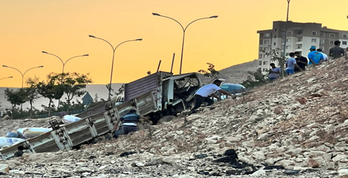 Şanlıurfa Evren sanayi - Akçakale çevre yolunda freni patlayan saman yüklü kamyon taşlara vurarak durabildi. Kazada 3 kişi yaralandı.