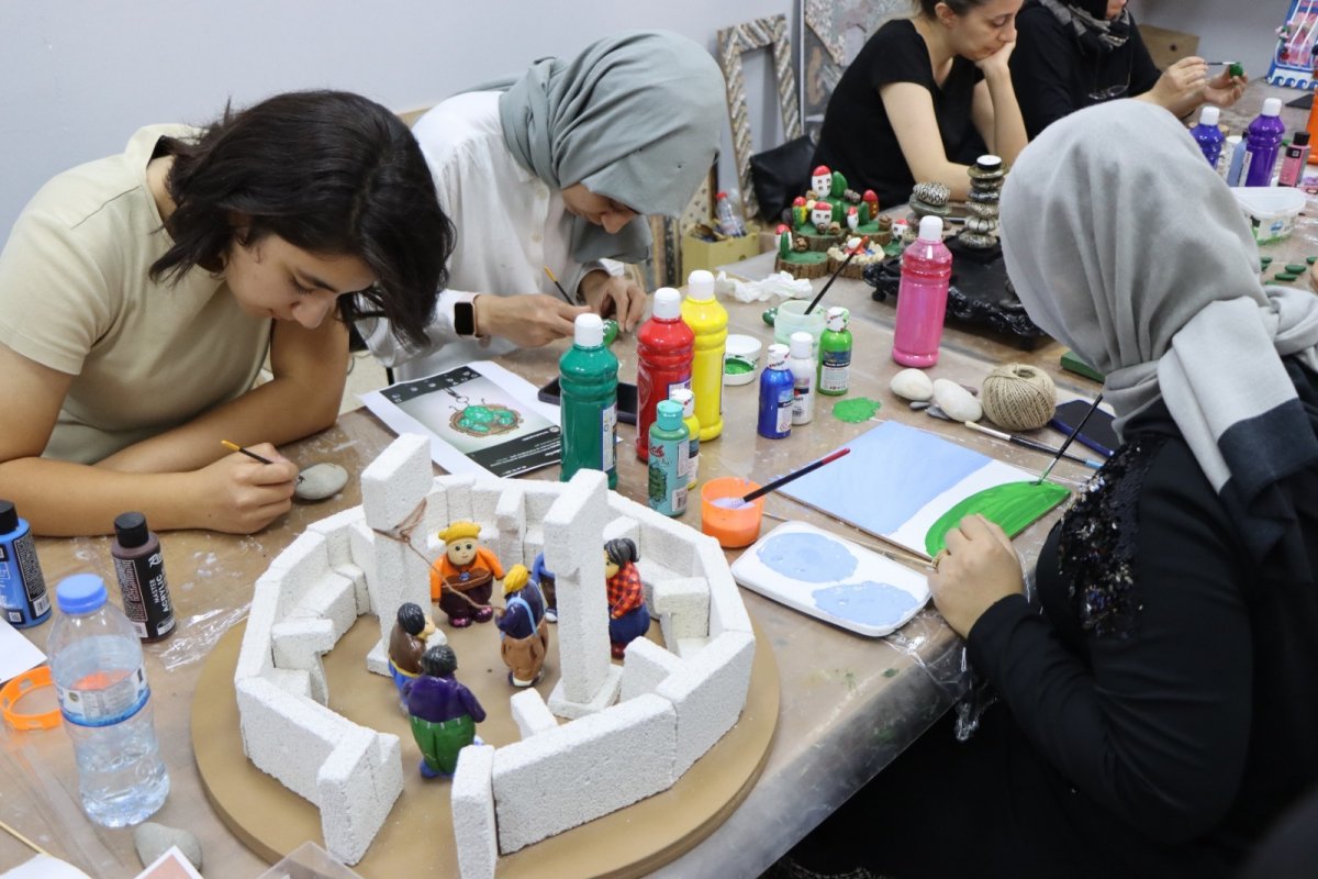 Şanlıurfa’nın yöresel kültürünü ve turizmini yansıtan eserleri de taşlarla yapan kadınlar, bir yandan el becerilerini geliştirirken diğer yandan ev ekonomilerine de destek sağlıyor.